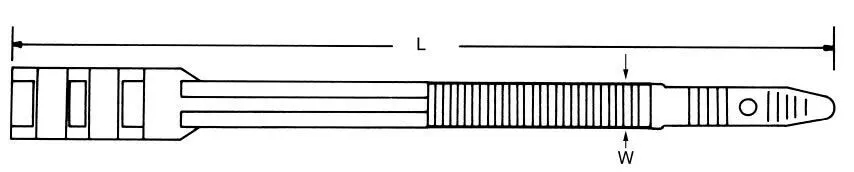 | 品名 ▼ | 長度 mm(in.) ▼ | 寬度 mm(in.) ▼ | 最大束徑 mm ▼ | 最小拉力 kg(Lbs) ▼ | 包裝(條/包) ▼ |