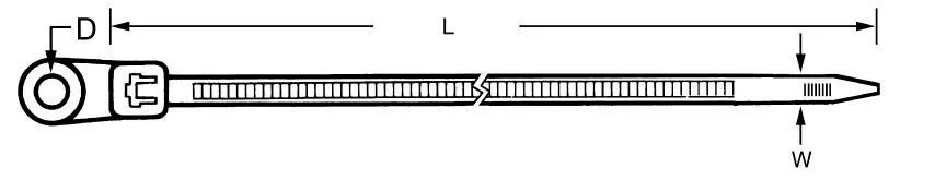 | 本色▼ | 黑色▼ | 长度mm(in.) ▼ | 宽度mm(in.) ▼ | 最大束径mm ▼ | 最小拉力kg(Lbs) ▼ | 包装(条/包) ▼ | 螺丝孔径mm ▼ |
