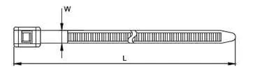 | 品名 ▼ | 長度 mm(in.) ▼ | 寬度 mm(in.) ▼ | 最大束徑 mm ▼ | 包裝(條/包) ▼ |