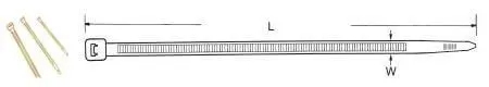 | 品名 ▼ | 長度 mm(in.) ▼ | 寬度 mm(in.) ▼ | 最大束徑 mm ▼ | 最小拉力 kg(Lbs) ▼ |