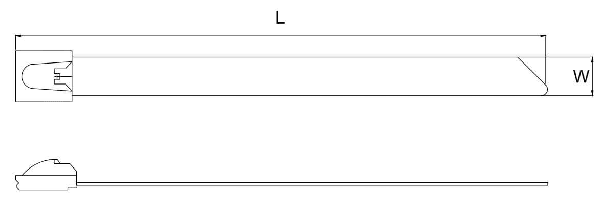 | 304 SS ▼ | 316 SS ▼ | 长度mm(in.) ▼ | 宽度mm(in.) ▼ | 最大束径mm ▼ | 最小拉力kg(Lbs) ▼ | 包装(条/包) ▼ |